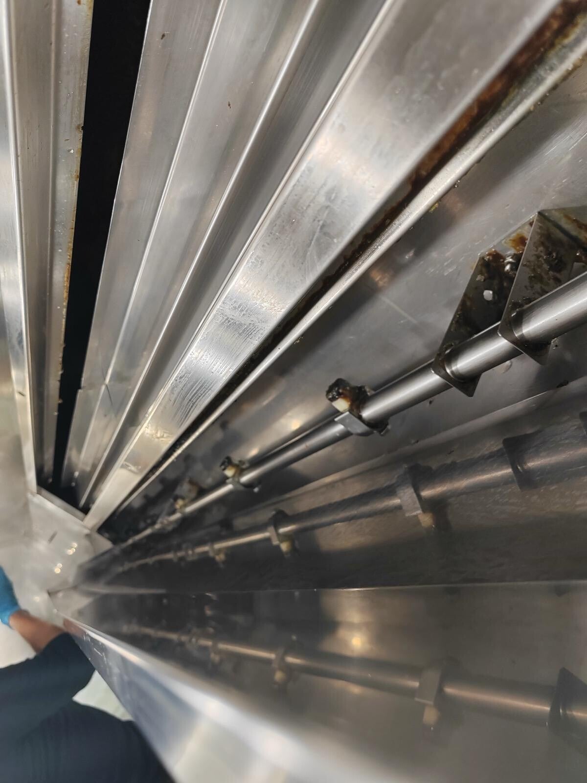 Aquí puedes ver el estado inicial de una campana de cocina industrial antes de nuestra intervención. La acumulación de grasa no solo es antiestética, sino que también representa un riesgo de incendio significativo. Nuestro equipo se especializa en restaurar estas superficies a su estado óptimo.